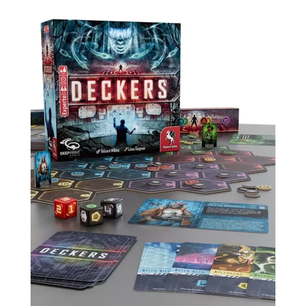 Deckers est un jeu de société de stratégie coopératif jouable de 1 à 4 joueurs, dès 12 ans pour des parties de 60 minutes, édité par Deep Print Games.