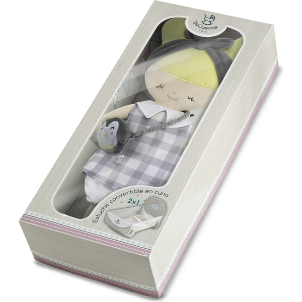 DeCuevas 20047 Poupée en peluche PIPO – 36 cm avec berceau