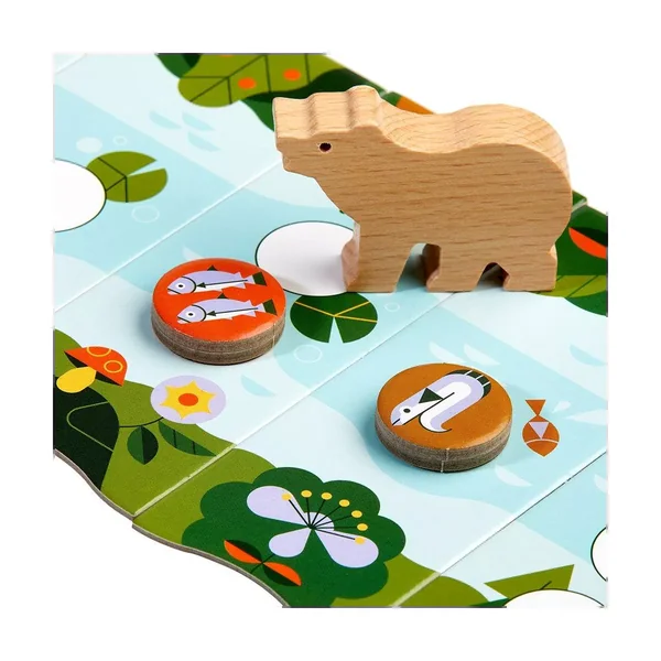 Tour après tour engagez vos poissons dans la rivière en choisissant astucieusement de les poser sur les tuiles dont l‘effet fera avancer l’ours vers le territoire de votre adversaire.