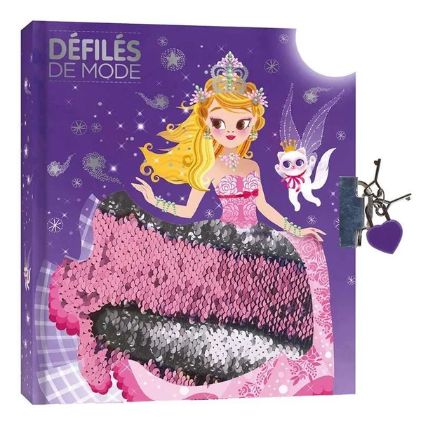 - 1 carnet secret de 96 pages avec une couverture scintillante faite de sequins de plusieurs couleurs réversibles à la main, Carnet : 15,5 x 18,5 cm.