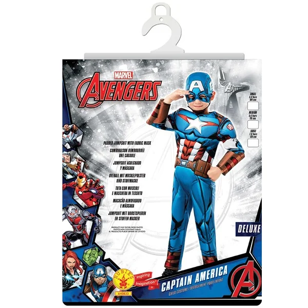 Une cagoule en mousse assortie à l’effigie de Captain America avec attache sous le menton et ouvertures pour les yeux