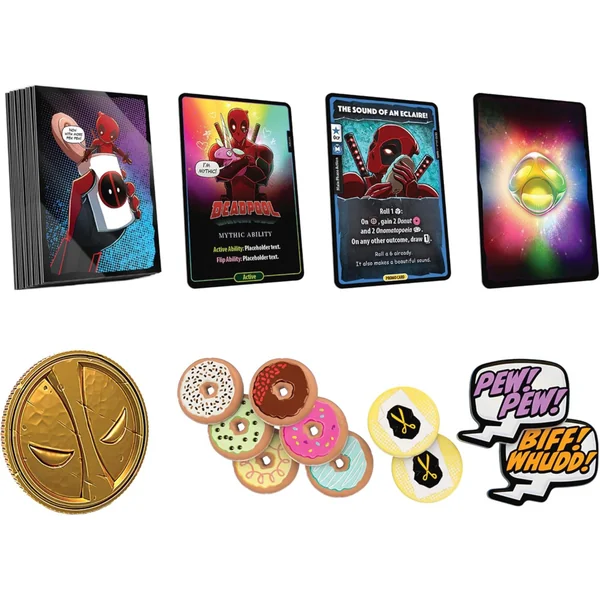Marvel X-Men Dice Throne – Deadpool Expansion est une extension où les joueurs incarnent Deadpool. Cette extension comprend ses propres dés, son plateau de joueur et un deck unique de cartes. Attaquez vos adversaires et activez des capacités telles que Fiesta, Guérison Mutante et Pistolets à doigts. Utilisez vos jets de dés pour accumuler des points de combat et dépensez-les pour des cartes d’action qui permettent d’améliorer vos capacités. Deadpool est compatible avec tout l’écosystème Dice Throne.