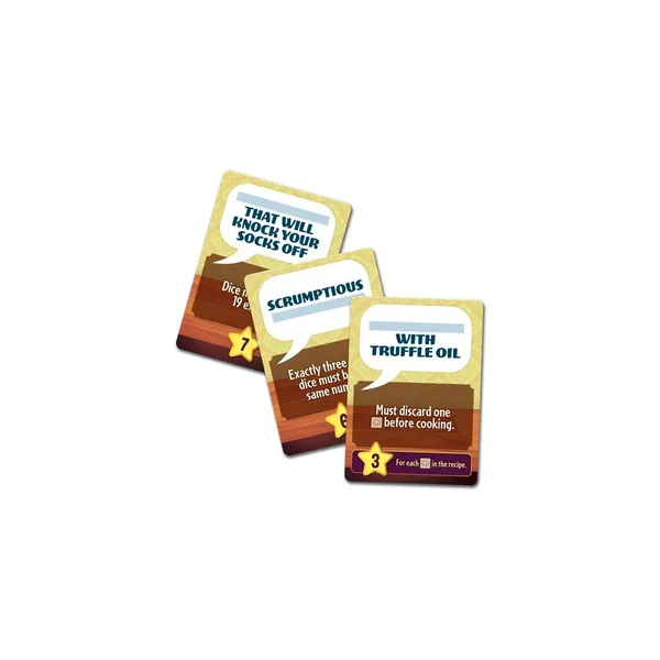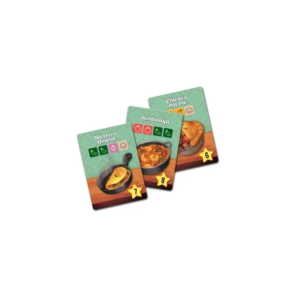 Dans Diced Veggies, vous utilisez à tour de rôle le couperet, coupant les dés d’ingrédients du billot partagé et les affectant aux recettes sur lesquelles vous travaillez. Ce mécanisme unique de collecte de ressources est la clé de votre délicieux succès. Les légumes particuliers dont vos recettes ont besoin ne sont pas votre seule considération… vous ne pouvez prendre qu’un nombre limité de pépins avec chaque côtelette, et les bonnes valeurs de dés peuvent débloquer toutes sortes de Hypes dignes de la bave pour augmenter le score d’une recette ! Un couperet astucieux est tout ce dont vous avez besoin pour concocter de délicieuses recettes dans ce jeu de découpe de dés pouvant accueillir jusqu’à quatre chefs !