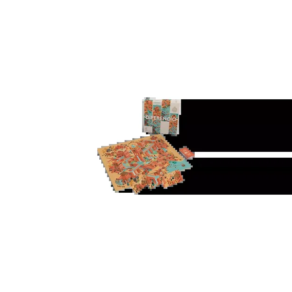 Diferencio est composé d’un plateau recto-verso avec des illustrations de chaque côté, et des emplacements pour recevoir des cartes qui complètent cette illustration. Choisissez l’un des deux plateaux, placez des cartes sur le plateau et mémorisez-les. Un joueur remplace une carte par une nouvelle carte différente. Les autres joueurs doivent trouver quelle carte a été changée.