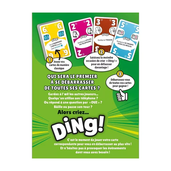 Ding ! est un jeu de société d’ambiance jouable de 2 à 7 joueurs, dès 8 ans pour des parties d’environ 10 minutes, édité par Don’t Panic Games.