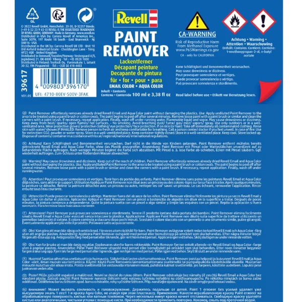 Le décapant enlève sans effort l’émail Revell et la peinture Aqua Color déjà séchés sans endommager les plastiques.