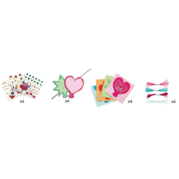 Un coffret créatif avec 4 baguettes à réaliser à l’aide de décalcomanies, stickers et rubans organza.