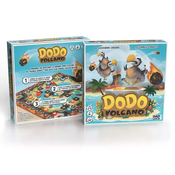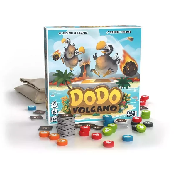 Dodo Volcano est un jeu de société familial jouable de 2 à 5 joueurs, dès 8 ans pour des parties d’environ 30 minutes, édité par Bad Luck Games.