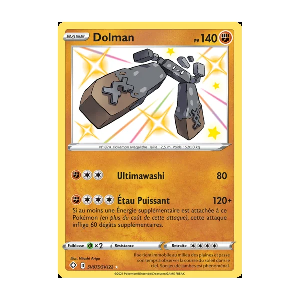 Découvrez Dolman (shfSV75), une carte Pokémon de l’extension Destinées Radieuses, provenant du bloc Épée & Bouclier. Idéale pour compléter votre collection, cette carte Secret Rare plaira autant aux collectionneurs qu’aux joueurs.