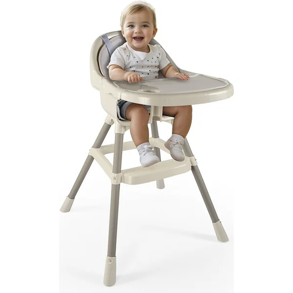 La chaise est également dotée d’un repose-pieds et de pieds antidérapants pour une sécurité supplémentaire. Elle convient aux enfants de 6 mois à environ 3 ans (charge maximale de 15 kg). Bon appétit !