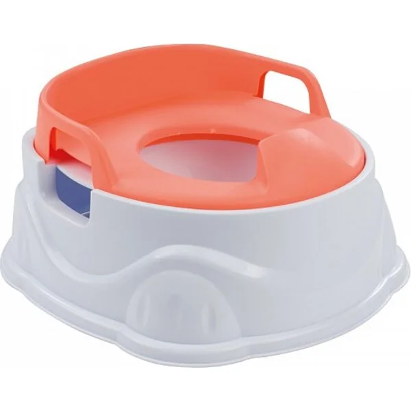 Avec ce pot 3 en 1, chacun se sent comme un roi. Convient aux débutants en tant que pot, puis comme adaptateur pour la cuvette des toilettes et enfin comme marchepied. Dans une attrayante couleur orange pastel.