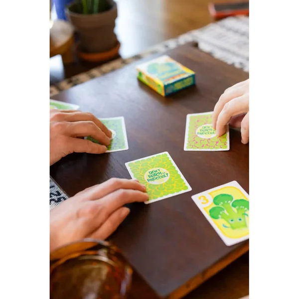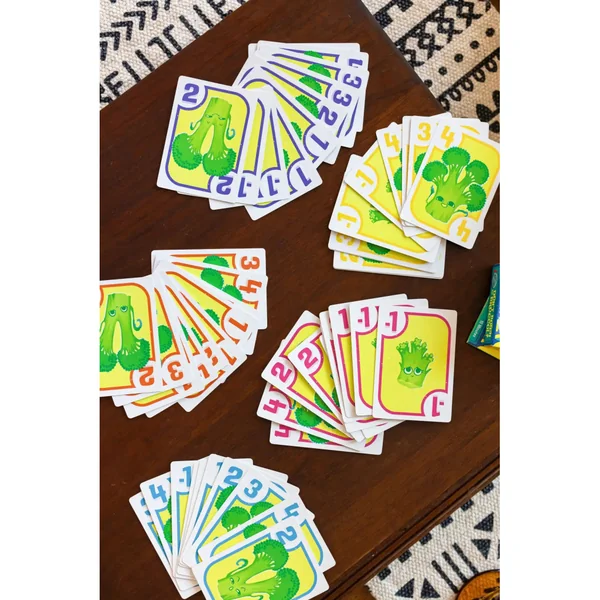 Dans Don’t Botch the Broccoli, chaque joueur possède une main identique de cartes brocolis allant de -1 à 4. À chaque tour, les joueurs jouent une carte simultanément.