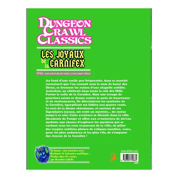 Dungeon Crawl Classics – Numéro 4 : Les Joyaux de la Carnifex est un scénario pour le jeu de rôle Dungeon Crawl Classics, édité par Akileos utilisant le système d20 system.