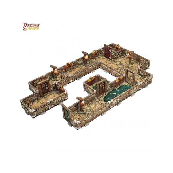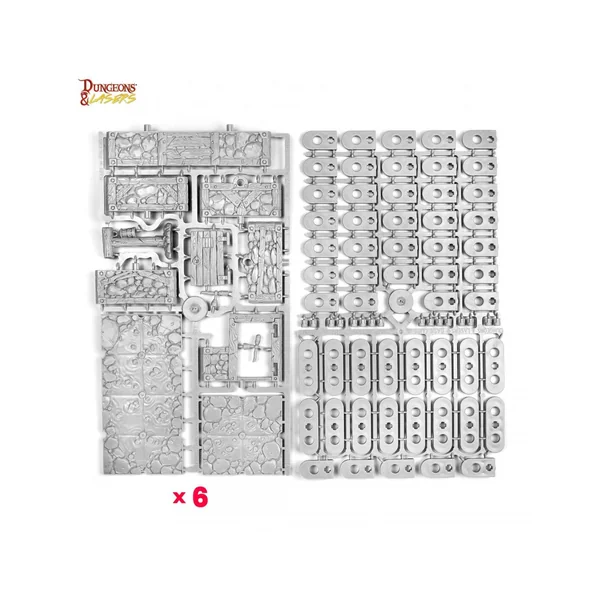 Les terrains Dungeons & Lasers sont fabriqués à l’échelle de table avec des grilles visibles de 30 mm et des murs à mi-hauteur de 25 mm.