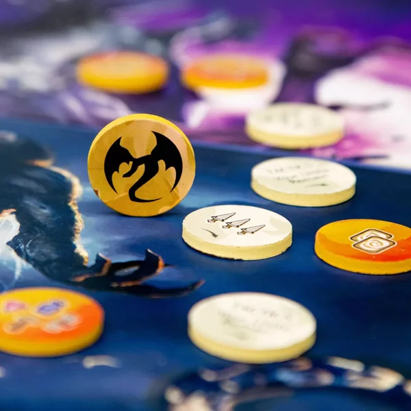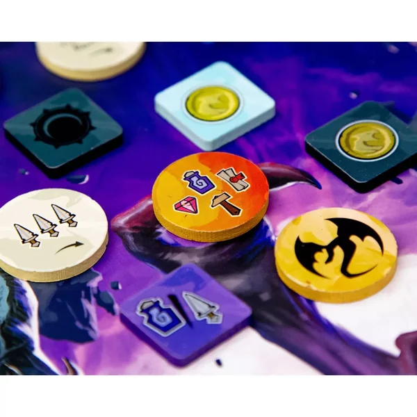 Il s’agit d’un pack de jetons emballé séparément qui met à niveau les 96 jetons treasure, 5 trove et 5 jetons tactiques des jetons de punchboard inclus dans toutes les versions de Dwellings of Eldervale en jetons en bois colorés avec des images imprimées correspondant aux jetons du punchboard.