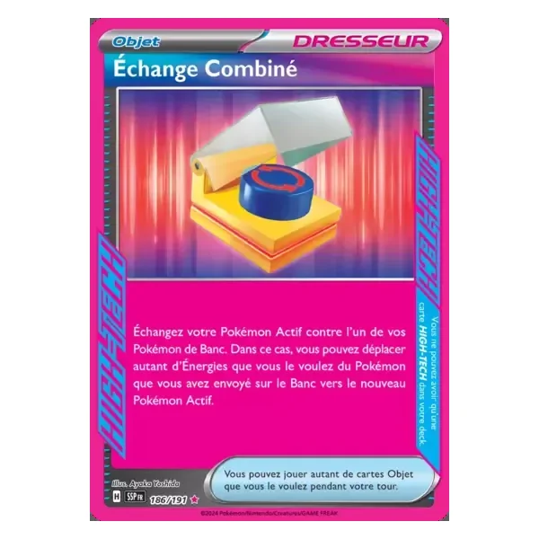 Découvrez Échange Combiné (ssp186), une carte Pokémon de l’extension Étincelles Déferlantes, provenant du bloc Écarlate & Violet. Idéale pour compléter votre collection, cette carte High-Tech plaira autant aux collectionneurs qu’aux joueurs.