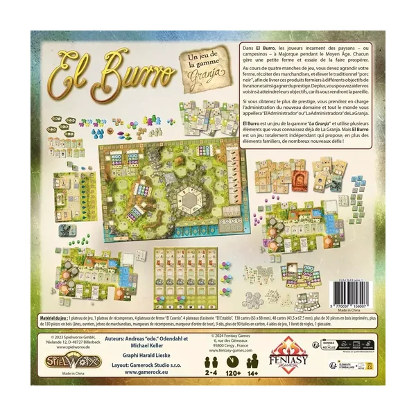El Burro est un jeu de la gamme « La Granja » et utilise plusieurs éléments que vous connaissez déjà de La Granja. Mais El Burro est un jeu totalement indépendant qui propose, en plus des éléments familiers, de nombreux nouveaux défis !