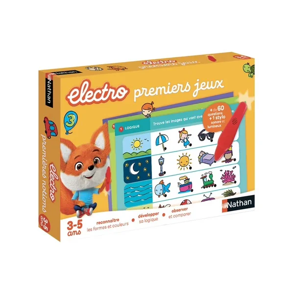 Un jeu électronique de questions-réponses pour faire ses premiers apprentissages. Observation, logique, couleurs, formes, chiffres… Pour chaque question, l’enfant pointe son stylo sur la bonne réponse. Si le stylo s’allume, bravo, la réponse est bonne !