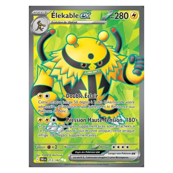 Découvrez Élekable (dri212), une carte Pokémon de l’extension Rivalités Destinées, provenant du bloc Écarlate & Violet. Idéale pour compléter votre collection, cette carte Ultra Rare plaira autant aux collectionneurs qu’aux joueurs.
