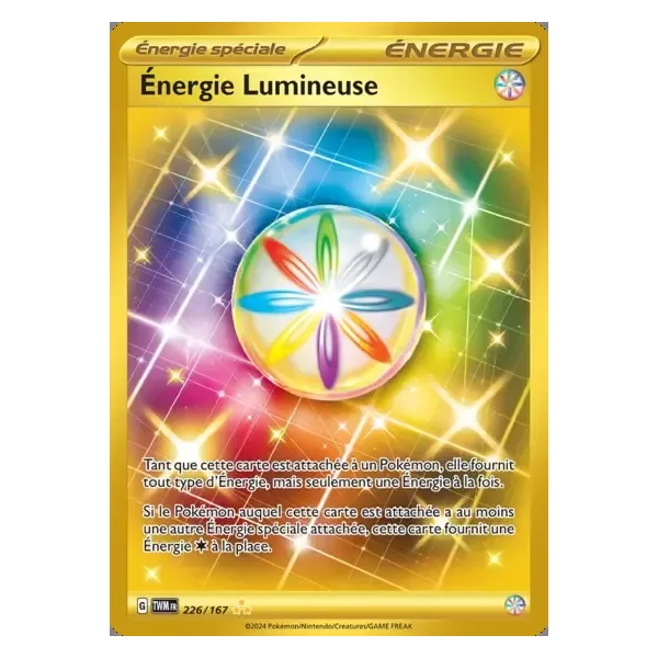 Découvrez Énergie Lumineuse (twm226), une carte Pokémon de l’extension Mascarade Crépusculaire, provenant du bloc Écarlate & Violet. Idéale pour compléter votre collection, cette carte Secret Rare plaira autant aux collectionneurs qu’aux joueurs.