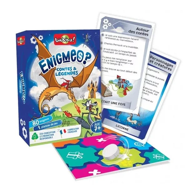 Faites preuve d’adresse en lançant le jeton sur le plateau pour tenter de gagner plus de cartes Énigmes – Contes et légendes !