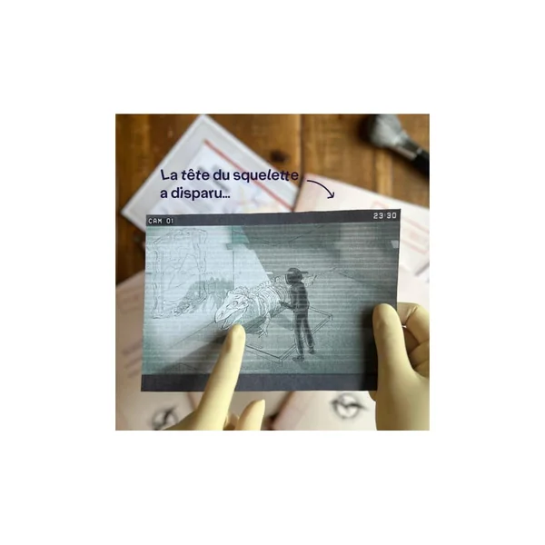 La tête du célèbre squelette du tyrannosaure de l’entrée du musée a disparu ! Un mystérieux individu a profité d’une seconde d’inattention du gardien du musée pour infiltrer le bâtiment, pirater le système de sécurité et subtiliser le squelette géant. Heureusement, les traces du voleur sont encore fraîches et de nombreux témoins semblent l’avoir vu.Saurez-vous le retrouver avant qu’il ne disparaisse avec son précieux butin ?