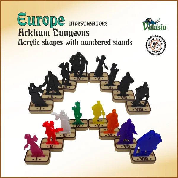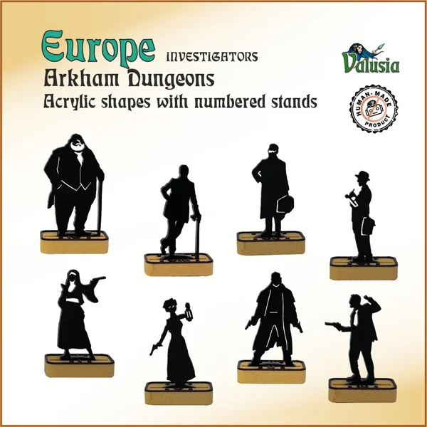 EUROPE INVESTIGATORS – un ensemble de 8 formes en acrylique avec des supports numérotés. Une solution robuste, abordable et pratique, sans besoin de peinture. Les supports sont numérotés pour une gestion facile, très pratique pour tout joueur ou maître de jeu. De plus, les supports mesurent seulement 15 mm de largeur, ce qui permet aux modèles de se déplacer dans des couloirs étroits.