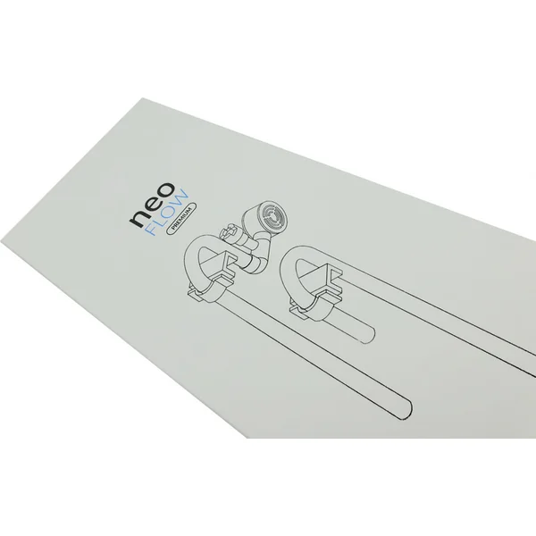 - Neo Flow propose un design plus compact en utilisant les dernières méthodes de fabrication par rapport à d’autres produits similaires. Comparé à d’autres produits, le rayon de courbure est beaucoup plus petit, ce qui permet une installation plus proche du verre. Étant donné que le tuyau de sortie est entièrement réglable, il est possible de changer la direction du flux d’eau, contrairement aux produits en verre.
