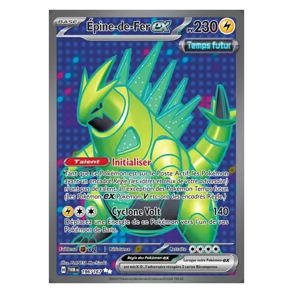 Découvrez Épine -de-Fer (twm196), une carte Pokémon de l’extension Mascarade Crépusculaire, provenant du bloc Écarlate & Violet. Idéale pour compléter votre collection, cette carte Ultra Rare plaira autant aux collectionneurs qu’aux joueurs.