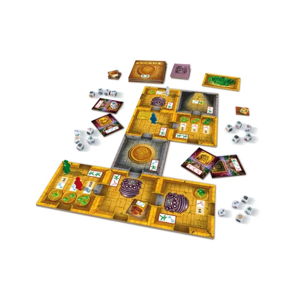 Dans Escape – La Malédiction du Temple Version 2023, les joueurs incarnent des aventuriers explorant un temple maudit, rempli de trésors et de pièges. Le jeu se joue en temps réel : les joueurs lancent simultanément des dés pour explorer les salles du temple, surmonter les obstacles et récupérer de précieux artefacts. L’objectif est de collaborer pour trouver la sortie du temple avant la fin du temps imparti, le tout dans une fenêtre de jeu de 10 minutes.