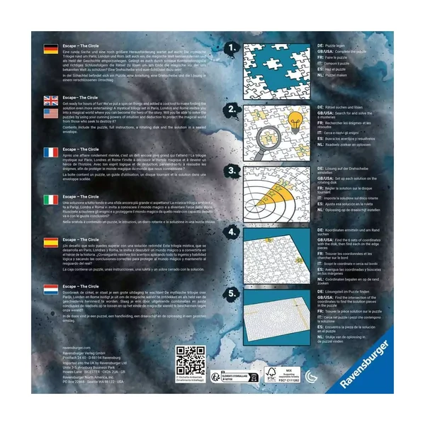 Tous les puzzles de Ravensburger sont imprimés sur un papier au fini mat et anti-reflets (pour le confort de vos yeux) et fabriqués en Europe à partir d’un carton épais, recyclé et certifié FSC.
