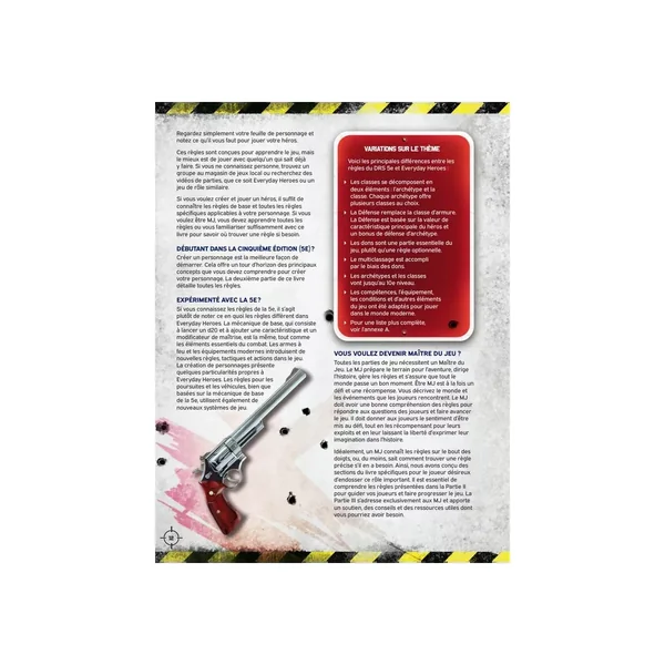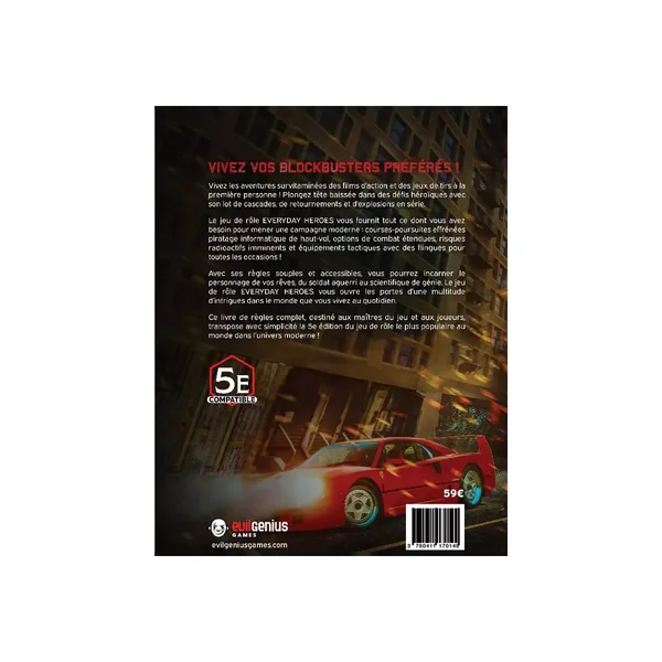 Vivez les aventures survitaminées des films d’action et des jeux de-tirs à la première personne ! Plongez tête baissée dans des défis héroïques avec son lot de cascades, de retournements et d’explosions en série, Le jeu de rôle Everyday Heroes vous fournit tout ce dont vous avez besoin pour mener une campagne moderne : courses poursuites effrénées, piratage informatique de haut vol, options de combat étendues, risques radioactifs imminents et équipements tactiques avec des flingues pour toutes les occasions !