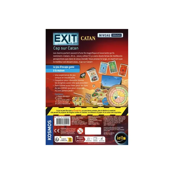 Exit : Cap sur Catan est un jeu d’escape jouable de 1 à 4 joueurs, dès 10 ans pour des parties d’environ 90 minutes, édité par Iello.