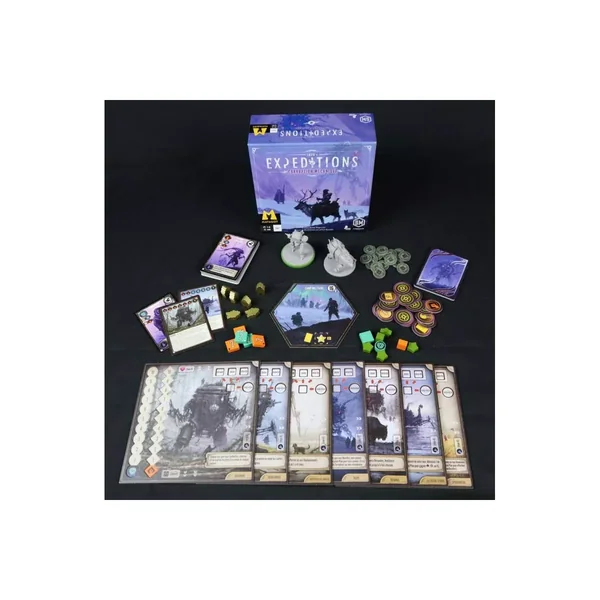 L’extension Expéditions : Corruption Mécanique contient : 7 Pupitres (à double couche; 2 nouveaux et 5 remplacements), 2 figurines Mecha en plastique, 6 meeples Ouvrier héros (or), 8 cartes Départ, 7 cartes Mecha, 6 cartes Découverte (5 nouvelles et 1 remplacement), 1 carte Aide Mecha corrompu, 12 cartes Corruption, 1 jeton Puissance, 1 jeton Ruse, 6 jetons Corruption, 4 jetons Gloire, 16 jetons Plan (à double face), 1 jeton Action, 1 anneau de socle (vert), 16 pièces en carton, 2 Aides de jeu et 1 feuille de patins à coller (30).
