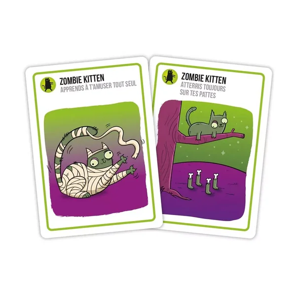 Une déclinaison encore plus délirante de Exploding Kittens jouable indépendamment ou avec d’autres boîtes de la gamme. Désormais, si vous tirez un chaton explosif et disposez d’un chaton zombie, remettez la carte mortelle dans la pioche, continuez à jouer, et ramenez un autre joueur d’entre les morts !