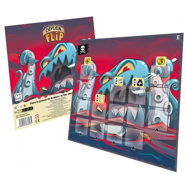 Captain Flip – Dans la Gueule du Kraken comprend 5 plateaux supplémentaires (pour jouer jusqu’à 5) pour vos parties de Captain Flip.