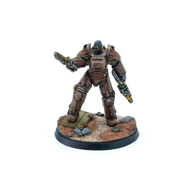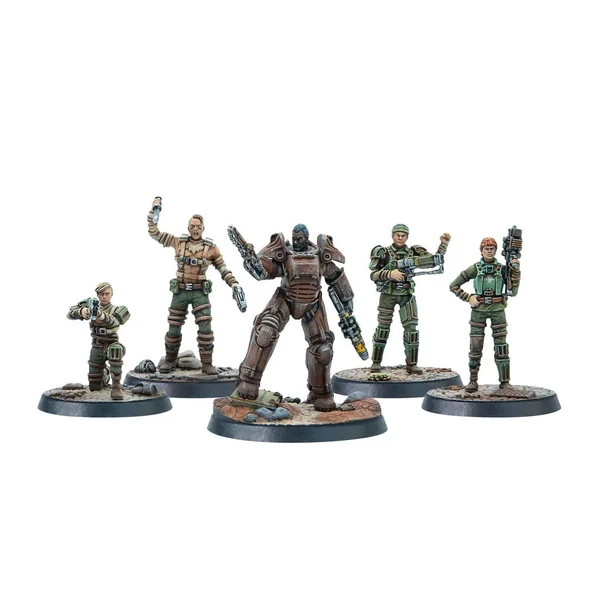 Ces figurines peuvent être utilisées avec les règles de l’extension Commonwealth ou avec les cartes numériques gratuites disponibles sur modiphius.net/pages/fallout-downloads.