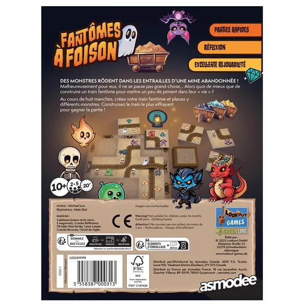 Jouez en famille en construisant le plus effrayant des trains fantômes, dans les entrailles d’une mine abandonnée. A chaque tour, choisissez une tuile et posez-la sur votre plateau de jeu composé de 3 tuiles sur 3. Selon les monstres qui peupleront le parcours et leur position, vous marquerez plus ou moins de points.