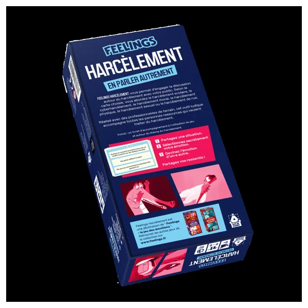 Feelings Harcèlement est un outil ludopédagogique destinés aux professionnel·les. Il aborde la thématique du harcèlement sous différentes formes : harcèlement moral, harcèlement physique, harcèlement scolaire, cyberharcèlement, harcèlement de genre ainsi que harcèlement de rue.