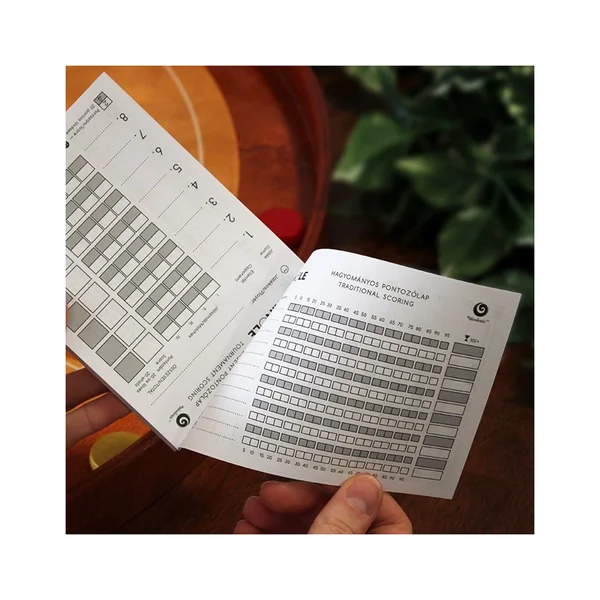 D’un côté, vous trouverez le modèle de score de tournoi, de l’autre côté, vous trouverez le modèle de score traditionnel, idéal pour des parties décontractées en famille et entre amis.