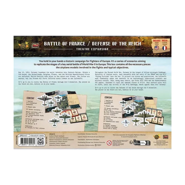 Chaque extension comprend cinq scénarios, des avions historiquement fidèles aux caractéristiques uniques et des éléments de jeu essentiels. Qu’il s’agisse de revivre la bataille de France ou de défendre l’espace aérien allemand, ces extensions ajoutent de la profondeur, de la stratégie et de nouveaux défis à Fighters of Europe.