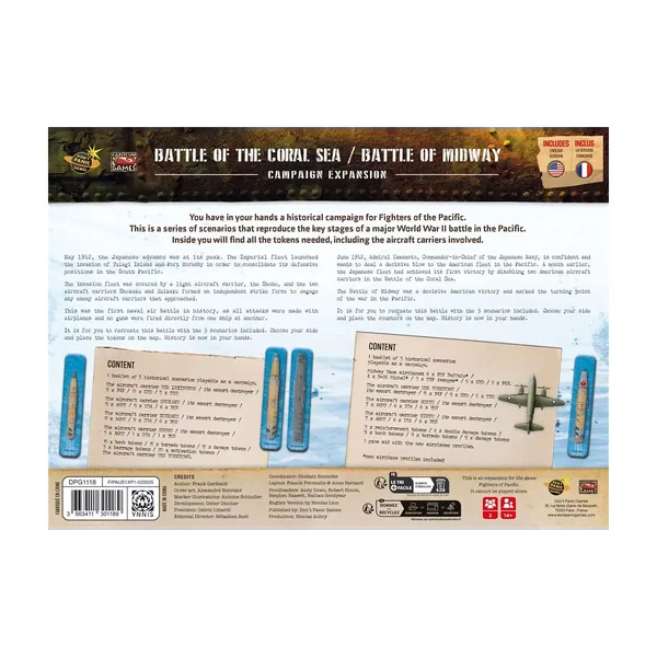 Chaque extension inclut de nouveaux avions, des scénarios d’inspiration historique et tous les jetons et composants nécessaires pour une intégration complète au jeu de base. Que vous combattiez pour l’île stratégique de Midway ou que vous vous lanciez dans des duels à enjeux élevés au-dessus de la mer de Corail, l’histoire est entre vos mains !