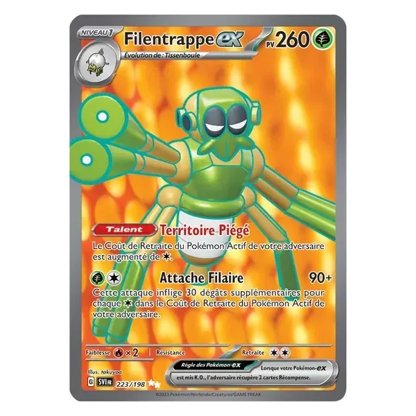 Découvrez Filentrappe (svi223), une carte Pokémon de l’extension Écarlate et Violet, provenant du bloc Écarlate & Violet. Idéale pour compléter votre collection, cette carte Ultra Rare plaira autant aux collectionneurs qu’aux joueurs.