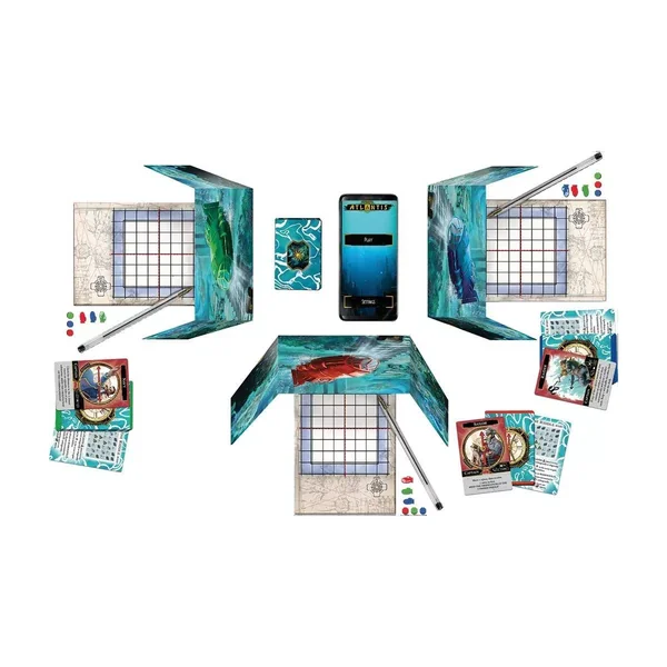 Quand vous vous sentez trop limité en cartes, vous pouvez remélanger tout votre deck, mais pour cela, il faut faire surface et ainsi révéler sa position à ses adversaires. L’occasion pour eux de placer une mine sur votre parcours pour vous ralentir ! Le joueur qui localise toutes les zones de l’Atlantide sans se tromper remporte la partie !