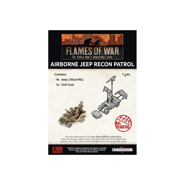 Airborne Jeep Recon Patrol (Plastic)(UBX65) inclut quatre Jeeps (50.cal) et leur équipage en plastique, ainsi qu’une carte d’unité.