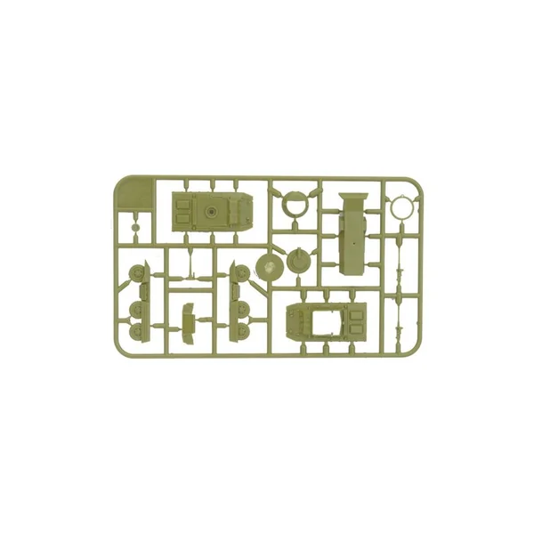 Cette boîte contient 2 M8 Greyhound / M20 Scout Cars and 2 jeeps en plastique. À monter et à peindre.