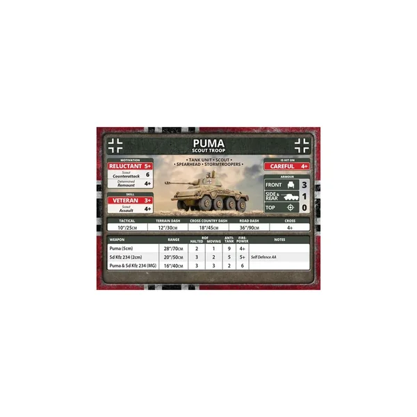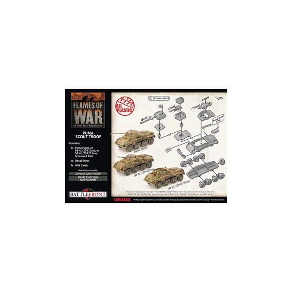 Possibilité de monter 4 véhicules blindés de type Puma (5cm) ou Sd Kfz 234 (2cm) ou Sd Kfz234 (7.5cm).
