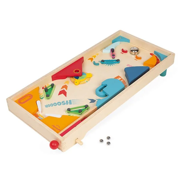 Magnifique flipper en bois brut aux couleurs chaleureuses pour les nostalgiques des jeux rétro !