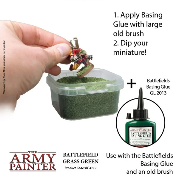 Une dispersion spéciale ressemblant à de l’herbe ou de la mousse légère. Peut être utilisé pour couvrir toute la base ou en petits groupes au-dessus de Brown Battleground. Ressemble à de l’herbe sur une base miniature. Utiliser en conjonction avec d’autres touffes ou matériaux de base pour un plus grand effet.