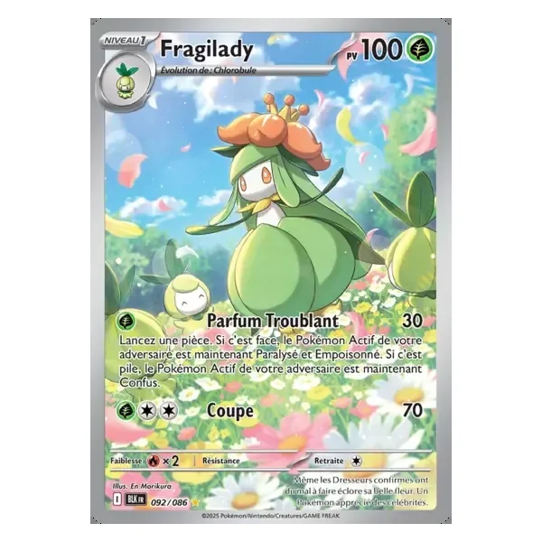 Découvrez Fragilady (blk092), une carte Pokémon de l’extension Foudre Noire, provenant du bloc Écarlate & Violet. Idéale pour compléter votre collection, cette carte Illustration Rare plaira autant aux collectionneurs qu’aux joueurs.